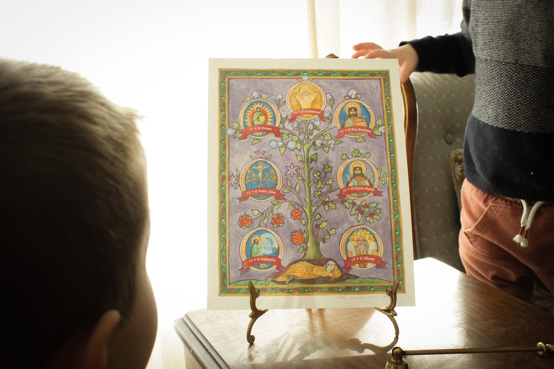 Display the artwork by your dining table, on your home altar, in your parish hall, or classroom to experience its depth and beauty, inviting repeated contemplation and making it a keepsake you can return to each Advent for years to come.