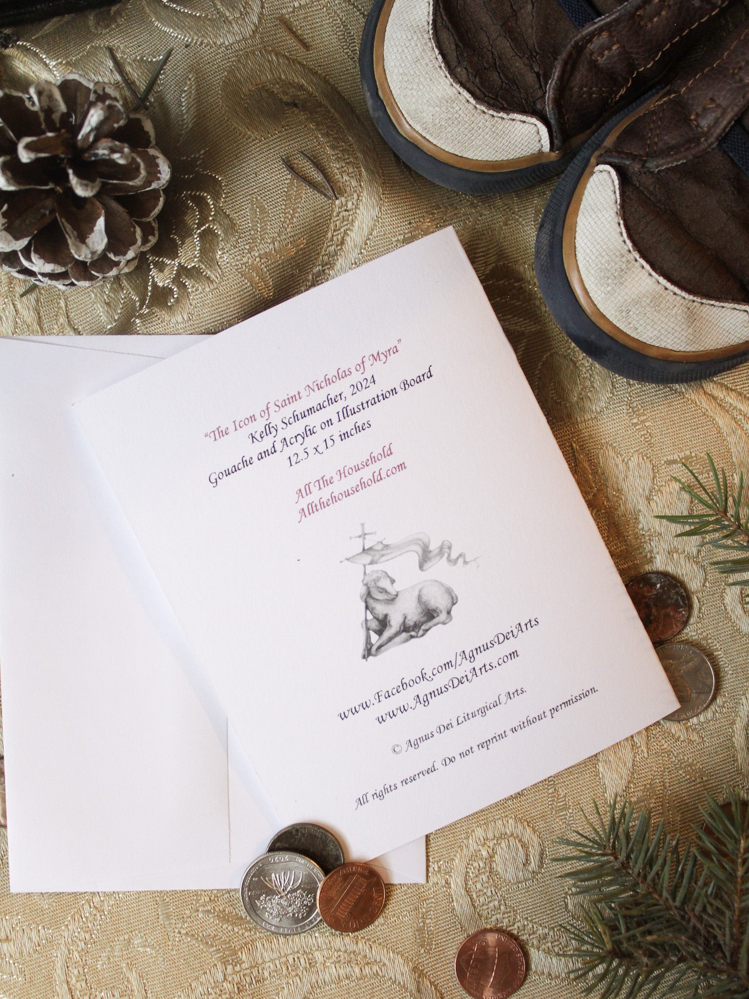 Celebrate the joys of the December 6th feast of St. Nicholas and the Church seasons of Advent and Christmas with this card designed by Kelly Schumacher for the 2024 All the Household shop launch.